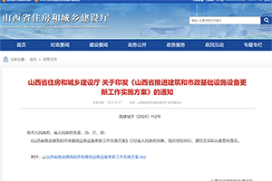 近日,山西省住房和城鄉(xiāng)建設(shè)廳印發(fā)了《山西省推進(jìn)建筑和市政基礎(chǔ)設(shè)施設(shè)備更...