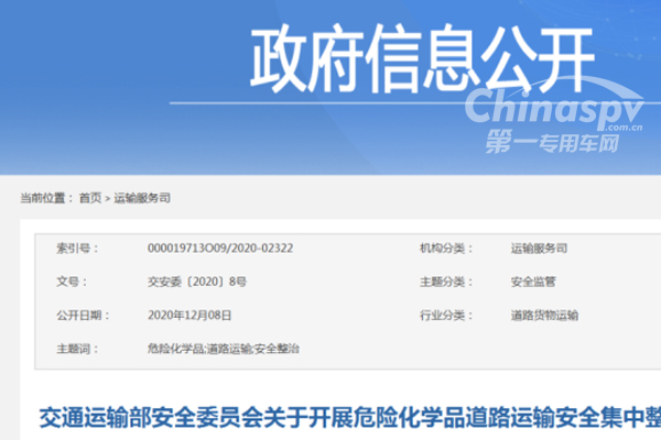 各地交通運輸主管部門要按照國務(wù)院安全生產(chǎn)委員會印發(fā)的《全國危險化學品道路運輸安全集中整治方案》(安委〔2020〕8號)及本通知要求,在地方人民政府的領(lǐng)導(dǎo)下,加強與工業(yè)和信息化、人力資源和社會保障、公安、應(yīng)急管理、市場監(jiān)管等部門的溝通協(xié)作,在確保行業(yè)穩(wěn)定的前提下,積極穩(wěn)妥推進整治工作,著力破解危險化學品道路運輸安全難題,根治長期存在的頑癥痼疾,有效防范化解重大全風險,堅決遏制重特大事故發(fā)生。各省級交通運輸主管部門要對整治工作進行全面總結(jié),形成書面報告,經(jīng)省(區(qū)、市)人民政府同意后,于2021年6月30日前報部,我部將匯總各省整治工作開展情況,并報送國務(wù)院安全生產(chǎn)委員會。