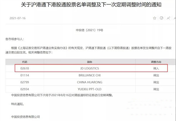 6月11日,深交所發(fā)布公告,因恒生綜合大型股指數(shù)實(shí)施成份股調(diào)整,根據(jù)《深圳證券交易所深港通業(yè)務(wù)實(shí)施辦法》的有關(guān)規(guī)定,將京東物流納入港股通股票名單并自6月11日起生效。