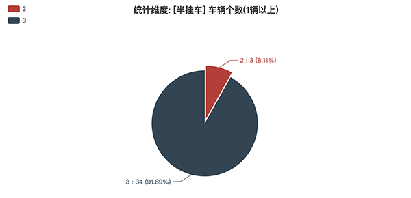 本次公告中的37款半掛車中,2軸(3輛,占比8.11%)、3軸(34輛,占比91.89%)。