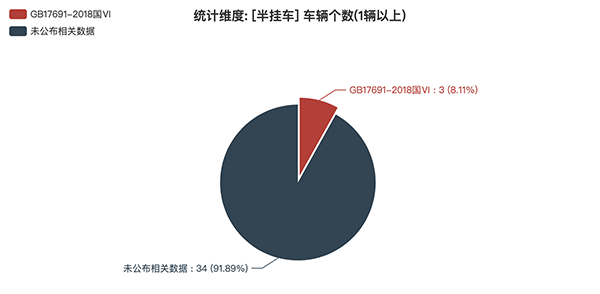 本次公告中的37款半掛車中,GB17691-2018國Ⅵ(3輛,占比8.11%)、未公布相關(guān)數(shù)據(jù)(34輛,占比91.89%)。