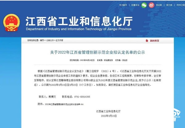 再獲省級“金字招牌” 江鈴底盤公司入選2022年江西省管理創(chuàng)新示范企業(yè)公示名單