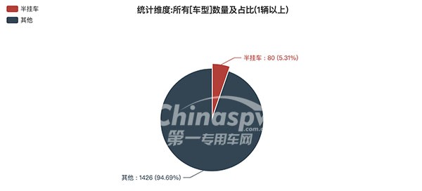 第362批新車產(chǎn)品公示中的1506輛產(chǎn)品中,半掛車(80輛,占比5.31%)。