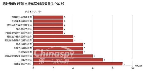 【數(shù)量在3臺(tái)以上的半掛車車型及數(shù)量】