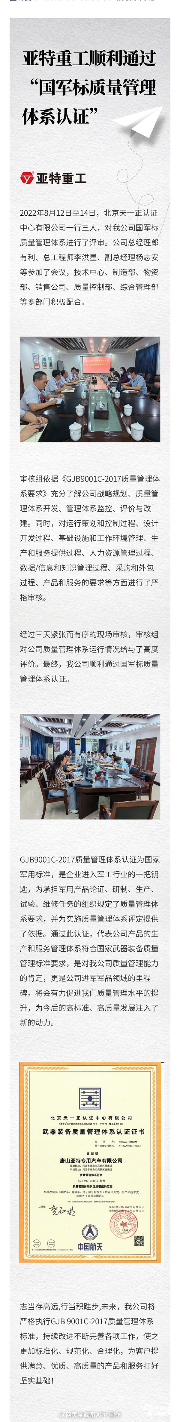 亞特重工順利通過“國軍標(biāo)質(zhì)量管理體系認(rèn)證”