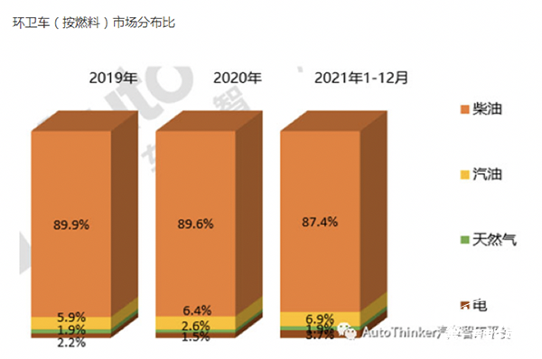 截圖4,2019年—2021年各類動(dòng)力環(huán)衛(wèi)車銷量占比(來源:汽車智庫平臺(tái))