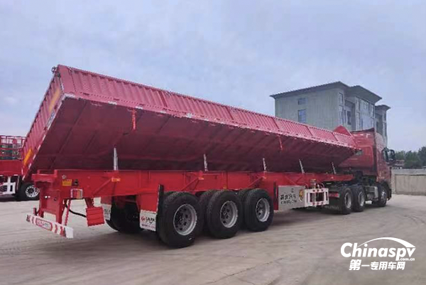 自卸半掛車是一種將自卸功能和普通貨運半掛車相結(jié)合的專用車型。它承載貨物的車廂能夠自動傾翻一定角度用于卸貨,所以具有節(jié)省卸料時間和勞動力,縮短運輸周期,提高生產(chǎn)效率,降低運輸成本等諸多的綜合優(yōu)勢。