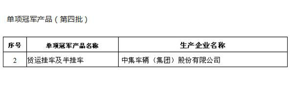 中集車輛半掛車榮獲工信部“制造業(yè)單項冠軍產(chǎn)品”