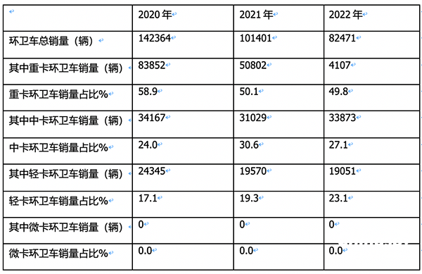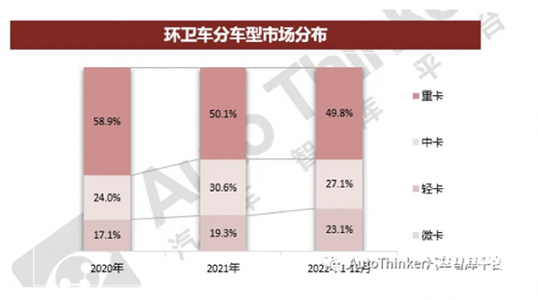 ----微卡類環(huán)衛(wèi)車占比幾乎全部為零,2022年微卡類環(huán)衛(wèi)車也沒有實(shí)際銷量,主要是微型車型太小,不太適合做城市環(huán)衛(wèi)車車型。