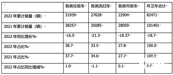 總之,從各類環(huán)衛(wèi)車占比看,2022年垃圾車占比為最大,且占比同比增加最多。