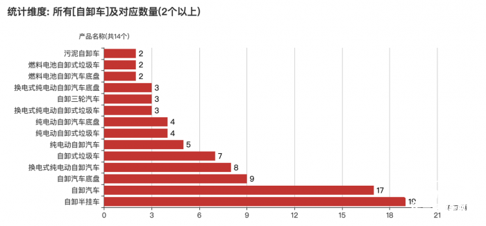 數(shù)量在2臺(tái)以上的自卸車車型及數(shù)量