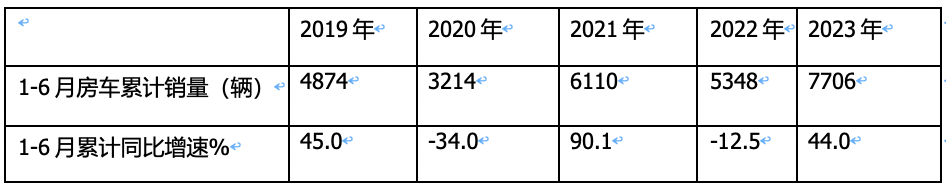表3,根據(jù)截圖1和上牌數(shù)據(jù),近5年1-6月房車?yán)塾?jì)銷量及同比: