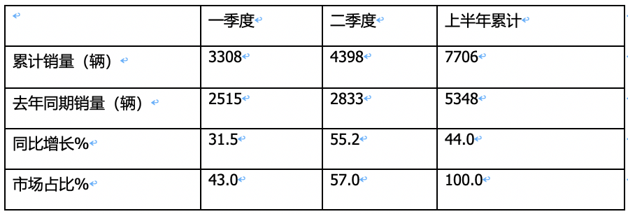 ----上汽大通累計(jì)銷售948輛,累計(jì)同比增長(zhǎng)31.1%,市場(chǎng)占比12.3%,奪得累計(jì)銷量冠軍;