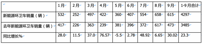 總之,無論是今年9月還是1-9月,新能源環(huán)衛(wèi)車同比增速均跑贏環(huán)衛(wèi)車大盤。