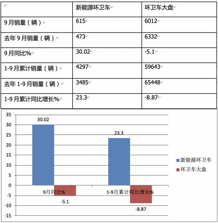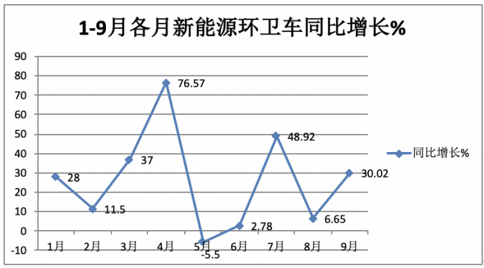 ---今年9月新能源環(huán)衛(wèi)車銷量同比增長30.02%,跑贏今年9月環(huán)衛(wèi)車大盤-5.1%的增速近35.1個百分點;