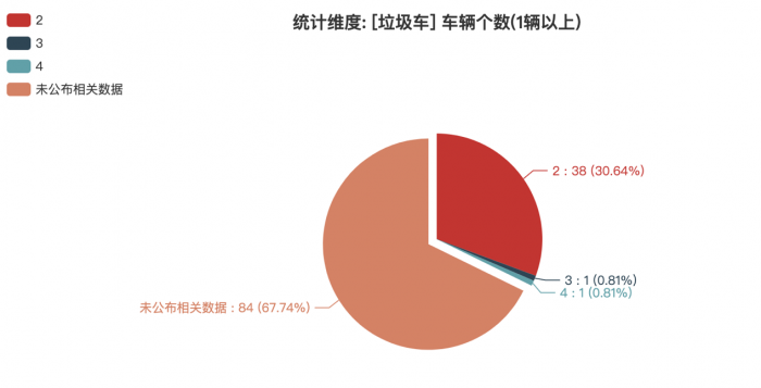本次公告中的124款垃圾車中,2軸(38輛,占比30.65%)、3軸(1輛,占比0.81%)、4軸(1輛,占比0.81%)、未公布相關(guān)數(shù)據(jù)(84輛,占比67.74%)。