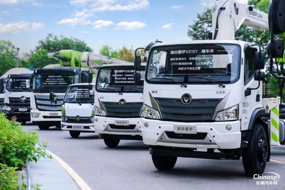 創(chuàng)新驅(qū)動發(fā)展,品質(zhì)鑄就輝煌。在新品發(fā)布環(huán)節(jié),福田雷薩龍騰版隨車吊及高空作業(yè)車率先亮相。在國內(nèi)專用車行業(yè)周期性調(diào)整背景下,福田雷薩憑借卓越研發(fā)實力和深厚技術(shù)積淀,積極響應(yīng)市場需求,推出了1.3噸至16噸折臂吊、直臂吊以及28米高空作業(yè)車等一系列創(chuàng)新產(chǎn)品,為吊裝行業(yè)帶來變革。隨后,福田雷薩龍騰版小方量攪拌車登場,采用福田瑞沃底盤,搭載濰柴190馬力發(fā)動機和13T級后橋,整車高度低于3米7、長度小于7米7,具有低罐體、小身材、大容量的優(yōu)勢,適應(yīng)狹窄工況,是鄉(xiāng)村城鎮(zhèn)建設(shè)的利器。