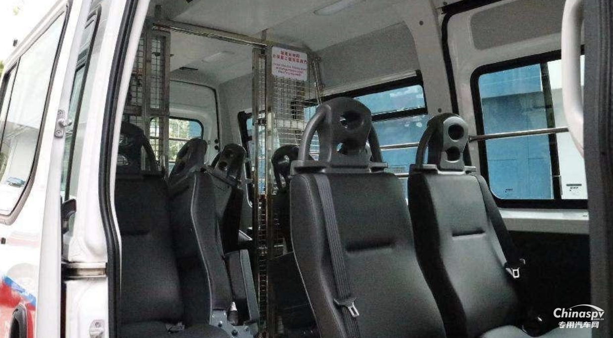 這款車(chē)選用了New Daily高頂車(chē)型,內(nèi)部空間寬闊,上下車(chē)處均設(shè)置了防滑地臺(tái)。寬敞的內(nèi)部空間配合儲(chǔ)物箱和物品架,不僅便于日常出警人員的運(yùn)載需求,還可以在車(chē)上處理文書(shū)工作。