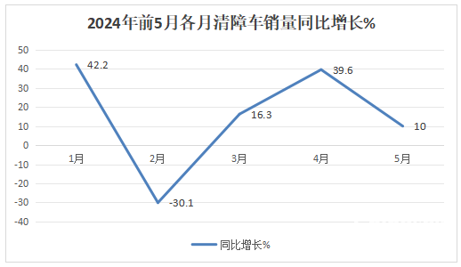 上兩圖可見,2024年1-5月清障車累計銷售7899輛,同比下增長14%,是近6年來同比第二個正增長的年份,同比增速達到14%,居第二,表現(xiàn)還算不錯。據(jù)分析: