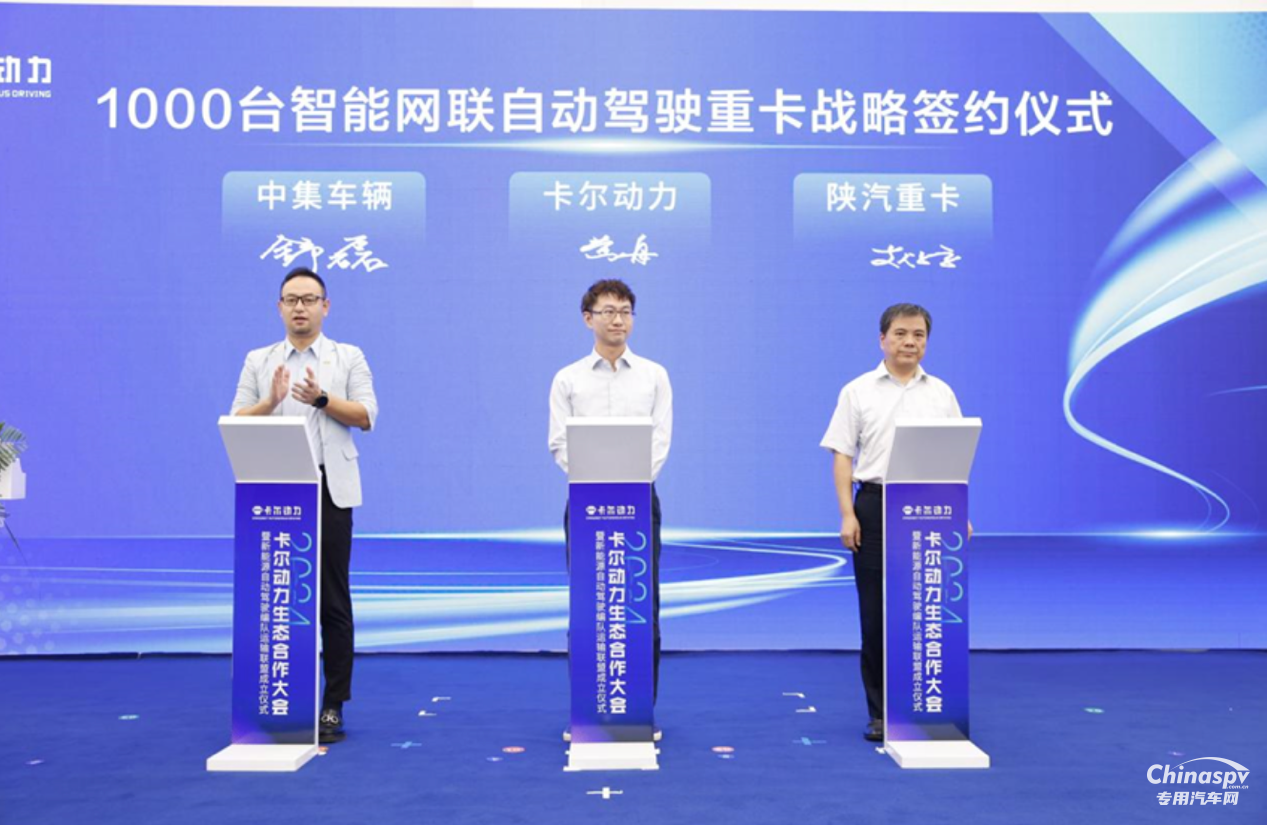 中集車輛、卡爾動力和陜汽重卡繼續(xù)深化合作,共同簽訂1000臺智能網(wǎng)聯(lián)編隊卡車戰(zhàn)略合作協(xié)議,刷新行業(yè)最大頭掛一體訂單規(guī)模。這標志著三家企業(yè)在參與我國智能網(wǎng)聯(lián)自動駕駛重卡和物流運輸新質(zhì)生產(chǎn)力領域,結(jié)成了強強聯(lián)合、資源共享的戰(zhàn)略共同體,各方將攜手共進,向“新”而行,共贏未來。