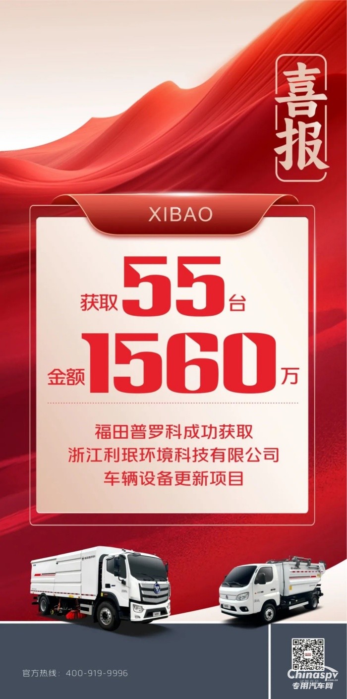 喜報(bào)!福田普羅科獲取浙江1560萬環(huán)衛(wèi)車輛更新項(xiàng)目