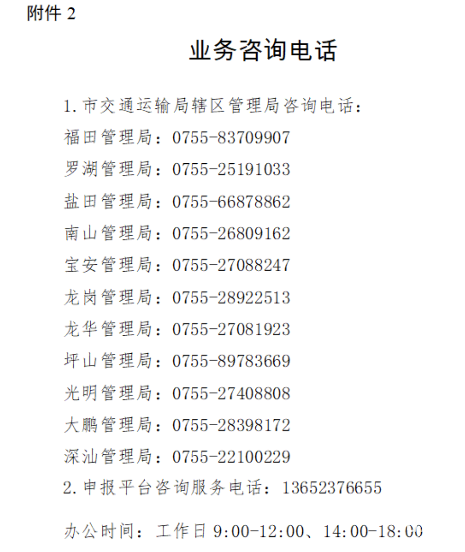 道路貨運(yùn)業(yè)戶在申報(bào)過(guò)程中遇到問(wèn)題,可在工作時(shí)間向所在區(qū)的市交通運(yùn)輸局轄區(qū)管理局咨詢;申報(bào)平臺(tái)問(wèn)題可咨詢平臺(tái)工程師。咨詢電話詳見附件2。