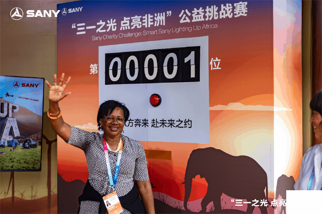 展會(huì)現(xiàn)場,三一集團(tuán)、三一基金會(huì)發(fā)起"三一之光,點(diǎn)亮非洲"公益挑戰(zhàn)賽,參與者完成提水任務(wù),即向非洲缺電地區(qū)捐贈(zèng)三一光伏小臺(tái)燈(共1000個(gè))。這場溫暖互動(dòng),迅速吸引了來自各國的觀眾積極參與,為非洲兒童照亮希望之路。