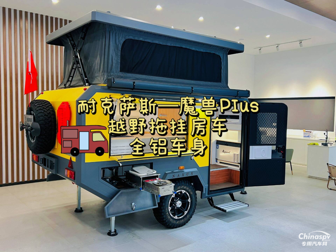 魔獸Plus越野拖掛房車車身采用全鋁材料,框架式結(jié)構(gòu),長寬高尺寸分別為4900/4720*2070*2130/2200MM,整備質(zhì)量僅有1.2噸;外觀有多種顏色方案可選(也可定制化或者噴涂防暴漆),符合越野房車的定位。頂部可以進(jìn)行升降,提高了通過限高的能力,也提升了車內(nèi)空間。