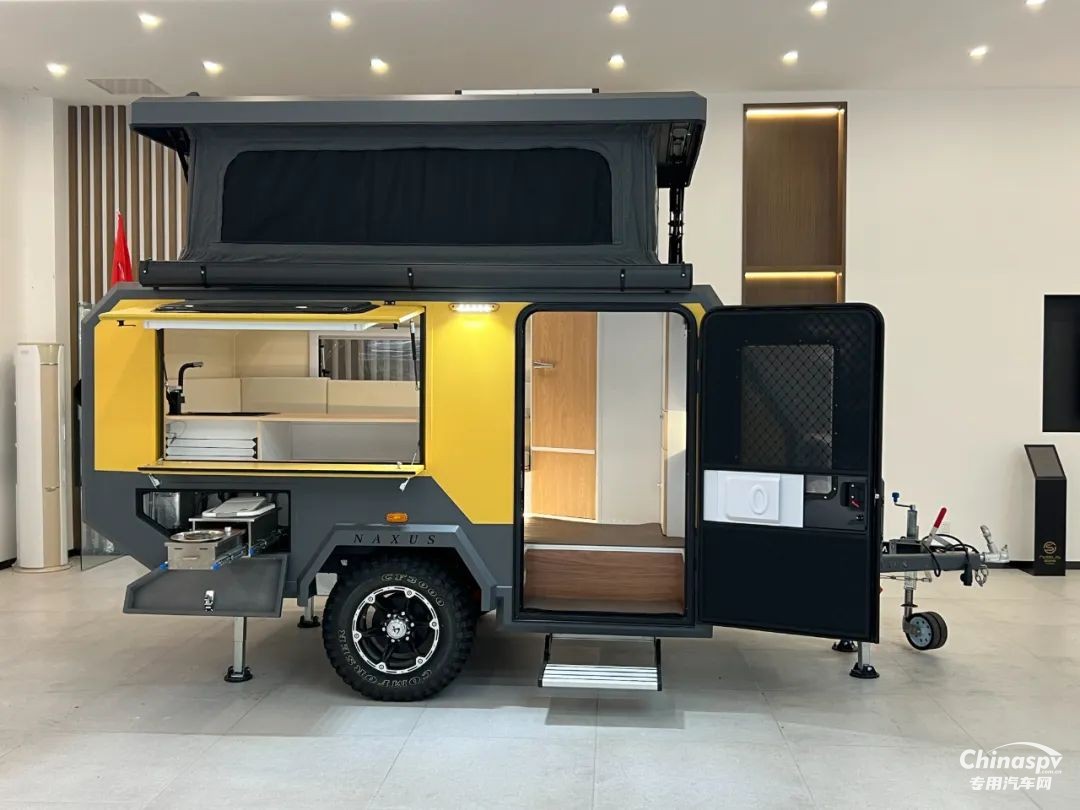 外部主要配置:澳式50 拖車連接器、重型雙輪導(dǎo)向輪、手動重型駐車支腿、外置超大儲物箱、手動升降頂棚、遮陽棚及抽拉高原版柴油灶(選配)等。