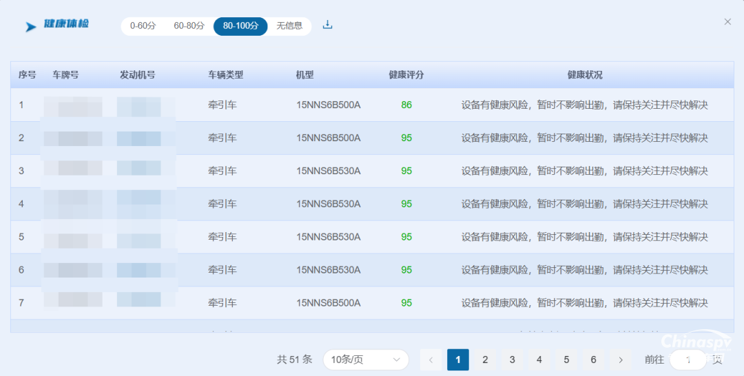 車輛健康體檢就像給車隊(duì)安排了一位“專屬醫(yī)生”,分分鐘生成超詳細(xì)的“健康診斷書”!從車牌號(hào)、發(fā)動(dòng)機(jī)號(hào)到車輛類型、機(jī)型,以及健康評(píng)分和健康狀況都安排得明明白白,特別是健康評(píng)分+健康狀況這對(duì)“管車雙保險(xiǎn)”,把潛在問題掐滅在萌芽期,出勤省心又安心~