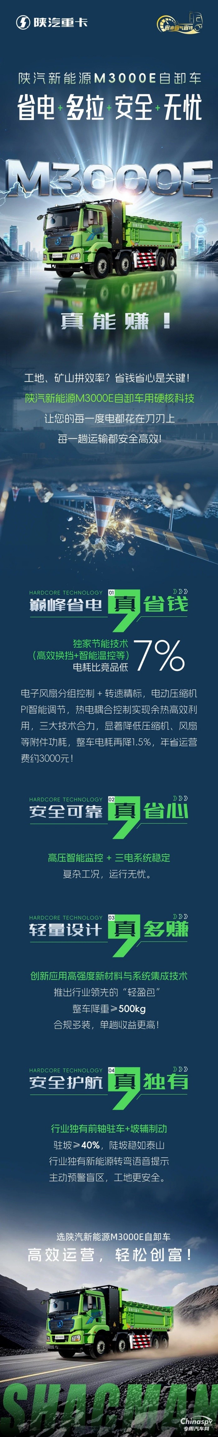 陜汽新能源M3000E自卸車(chē):省電·多拉·安全·無(wú)憂(yōu),真能賺!