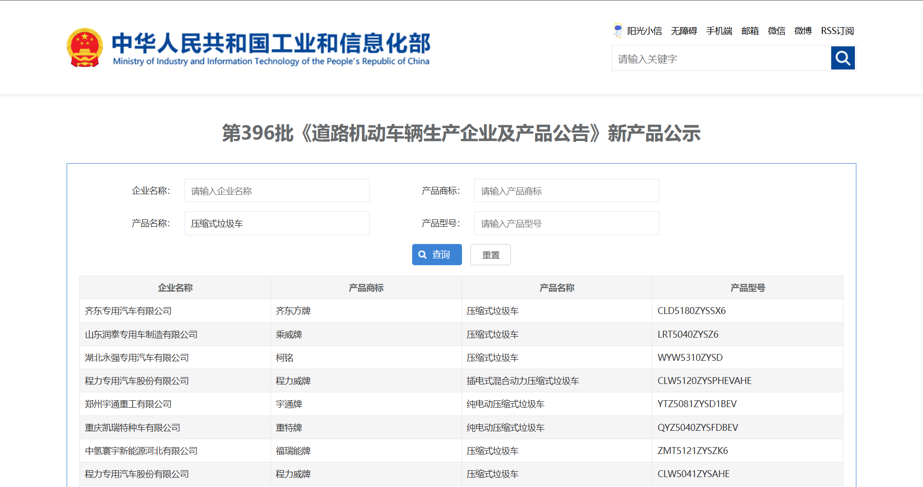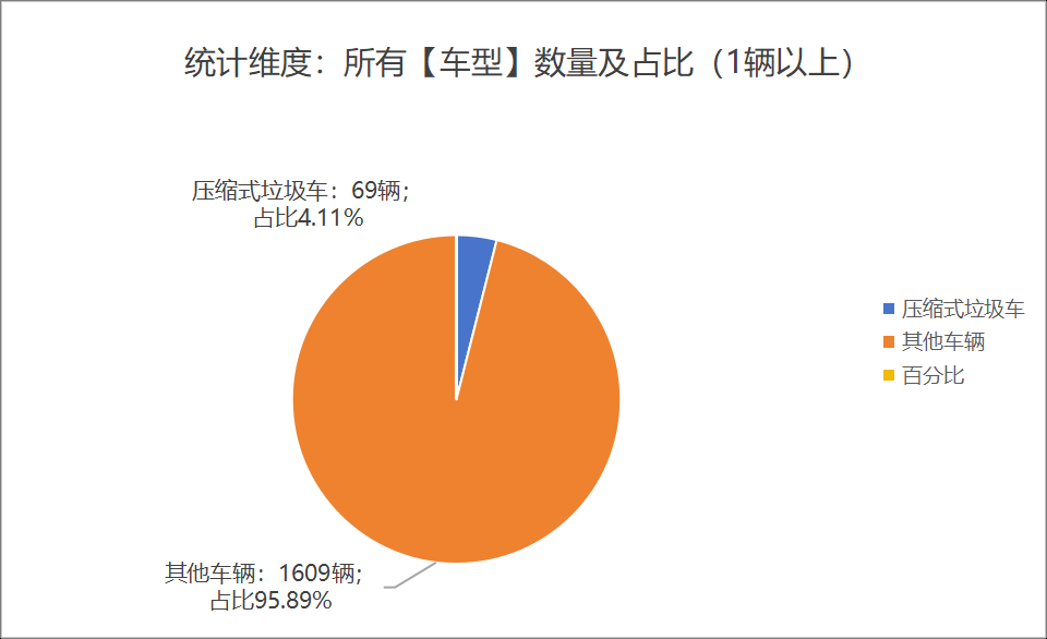 第396批新車產(chǎn)品公示中的1678輛產(chǎn)品中,壓縮式垃圾車(69輛,占比2.63%)