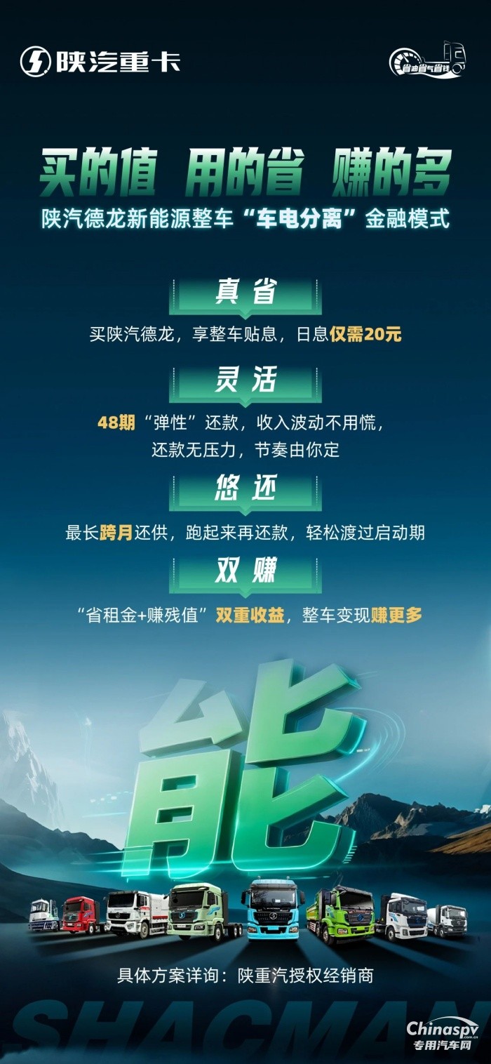 陜汽新能源整車“車電分離”金融模式,買的值,用的省,賺的多!