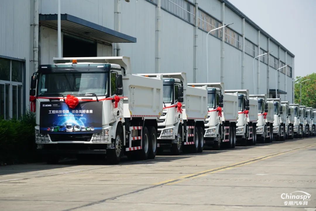 2025年8月15日,配套中集車輛DTB·渣土車業(yè)務(wù)上裝的200輛徐工汽車有序駛出駐馬店工廠,奔赴國際市場。