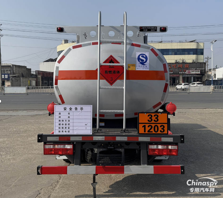 10噸罐式運輸底盤同樣實力不俗,192mm加強等直大梁結合7噸級后橋與高強度板簧,打造出穩(wěn)固的承載基礎。其罐體容積最大可達8.1m³,在同類車型中裝載能力領先,特別適合油品等液態(tài)危化品的高效轉運,是追求運輸方量的用戶的理想選購。