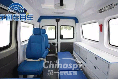 ZK5037XJH型救護(hù)車醫(yī)護(hù)倉內(nèi)高達(dá)到1.7米,內(nèi)飾均采用高分子環(huán)保材料,易清潔、消毒,有效保障車內(nèi)衛(wèi)生條件,提升病人運(yùn)送過程中的安全性。宇通專用車在原基型車基礎(chǔ)上,創(chuàng)新性的將空調(diào)由后門位置移至駕駛室上方,有效增加后門處空間,人員上下車更便捷。