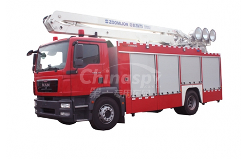 中聯(lián)牌ZLJ5140TXFZM75型照明消防車(專利號(hào):ZL201120352861.8、ZL20112034057.3、ZL201120354056.9)是在全面調(diào)研國(guó)內(nèi)外照明消防車產(chǎn)品現(xiàn)狀、結(jié)合國(guó)內(nèi)外照明消防車?yán)砟钸M(jìn)行創(chuàng)新設(shè)計(jì)、具有自主知識(shí)產(chǎn)權(quán)的新一代照明消防車。整車采用三節(jié)折疊臂式照明燈桿,作業(yè)高度高、照明強(qiáng)度大、照射范圍廣、照射距離遠(yuǎn)。特別適用于各種復(fù)雜的大面積火場(chǎng)照明和災(zāi)害事故搶險(xiǎn)救援現(xiàn)場(chǎng)照明。