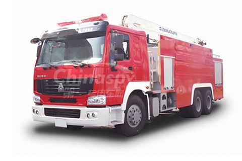 該車帶有水罐、消防泵,臂架頂端的消防炮射程遠,流量大,即可打直流,又可噴霧,可以在距火源較遠的位置獨立完成救火作業(yè),是當今世界上較理想的高空消防滅火裝備。
