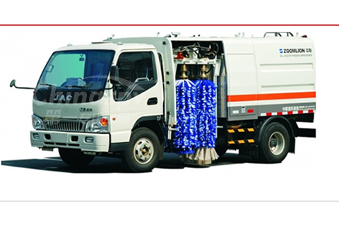 ZLJ5070THQHE3型護(hù)欄清洗車采用安徽江淮汽車股份有限公司生產(chǎn)的HFC1071KT二類汽車底盤改裝,排放達(dá)到歐Ⅲ標(biāo)準(zhǔn),副發(fā)動(dòng)機(jī)采用江鈴JX493Q1柴油機(jī),副發(fā)動(dòng)機(jī)經(jīng)分動(dòng)箱驅(qū)動(dòng)各工作裝置。清洗護(hù)欄時(shí),可采用噴嘴向護(hù)欄進(jìn)行低壓(或高壓)噴水、四個(gè)馬達(dá)帶著滾刷旋轉(zhuǎn)并夾著護(hù)欄對(duì)護(hù)欄進(jìn)行清洗作業(yè);路面沖洗時(shí),駕駛室前端噴嘴向路面左、右兩側(cè)噴水。整機(jī)技術(shù)水平處于國(guó)內(nèi)護(hù)欄清洗車領(lǐng)先地位。