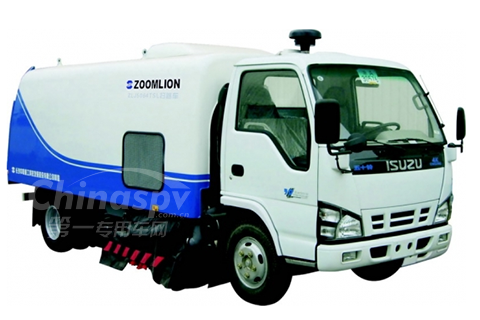 采用吸掃結(jié)合、干式除塵、電液控制,液壓傾翻卸料的作業(yè)方式對(duì)路面進(jìn)行清掃作業(yè)。