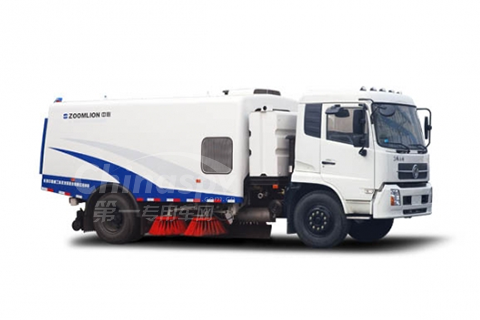 采用“中置四盤刷——后置吸嘴,并在吸嘴內設置短臥掃和反吹風”的掃、吸工作裝置總體結構布置方式,具有清掃寬度大、清掃速度高、吸入粒度大、掃凈度高、掃刷更換方便、作業(yè)油耗低、使用成本低、作業(yè)效率高、整車通過性能好等優(yōu)點。