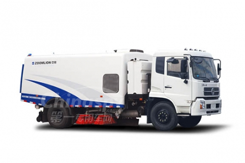 采用“中置四盤刷——后置吸嘴,并在吸嘴內設置短臥掃和反吹風”的掃、吸工作裝置總體結構布置方式,具有清掃寬度大、清掃速度高、吸入粒度大、掃凈度高、掃刷更換方便、作業(yè)油耗低、使用成本低、作業(yè)效率高、整車通過性能好等優(yōu)點。