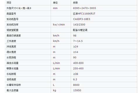 ZLJ5163GQXHE3型清洗車采用配有CA6DF3-18E3型發(fā)動機的江淮HFC1166KR1T汽車二類底盤改裝,功率強勁,排放達(dá)到國Ⅲ標(biāo)準(zhǔn)。