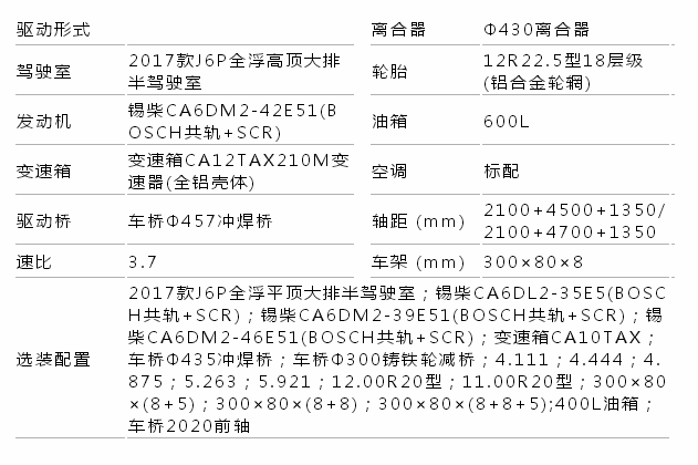 輕量:采用1950前橋、鋁變速箱、鋁儲(chǔ)氣筒、真空胎,整車自重較原有2020前橋J6P產(chǎn)品輕0.5噸左右,選裝單層車架,鋁合金輪輞整車最輕可達(dá)9.1t,為用戶創(chuàng)造更多經(jīng)濟(jì)效益