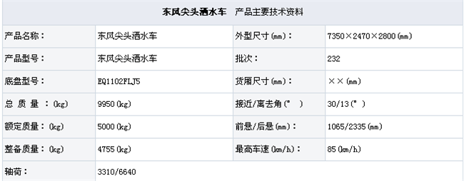 湖北潤力東風尖頭灑水車EQ1102FLJ5