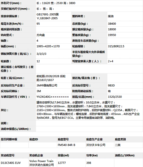 公告型號 ZXF5380GXFPM180/V5