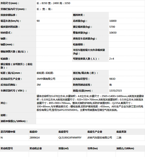 公告型號(hào) ZXF5170GXFAP60/W5
