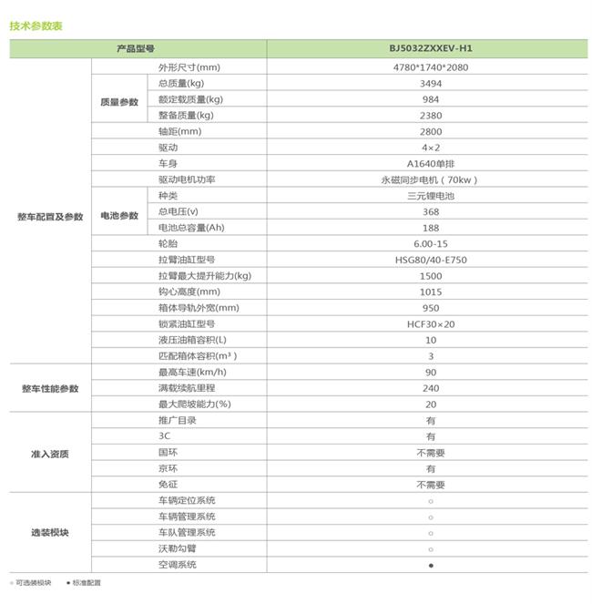 福田普羅科純電動車廂可卸式垃圾車