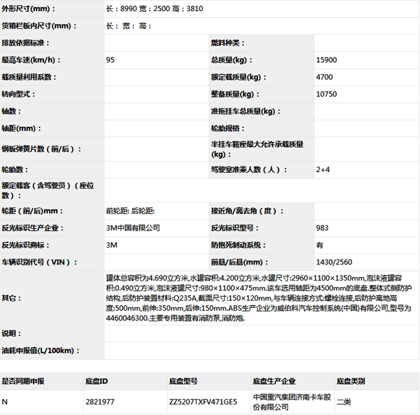 公告型號(hào) XZJ5191GXFPM80/F2