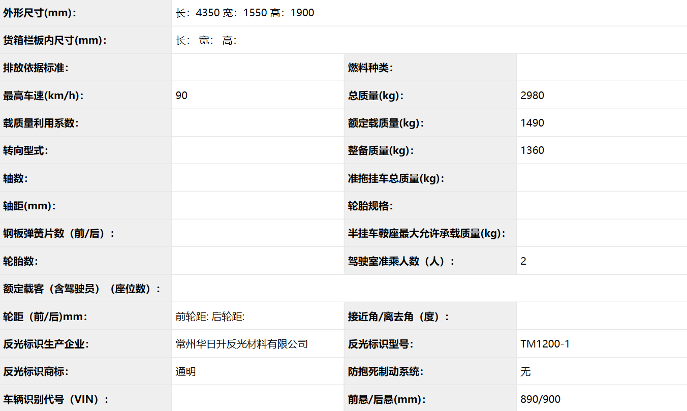 公告型號 CLW5031ZXXK5